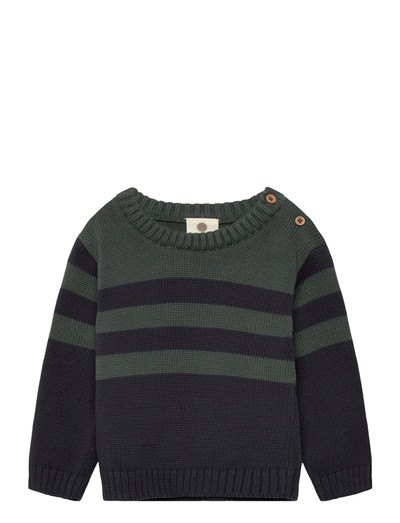 Lovely knitted sweater from EN FANT in a soft cotton quality. The sweater features long sleeves, soft rib edges, and buttons on one shoulder. Certified acc. to GOTS - organic CERES-0366