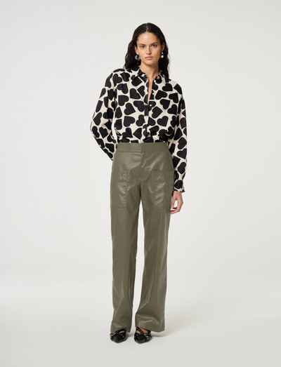 Grosse Herzmotive definieren diese langärmlige Bluse und verleihen einer klassischen Silhouette eine verspielte Note. Das Design verfügt über eine Knopfleiste vorne und eine entspannte Passform, was sie zu einer vielseitigen Ergänzung für jede Garderobe macht.