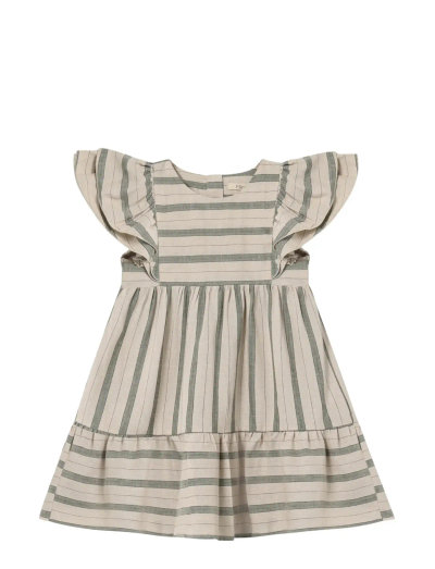 Dieses Kleid mit Rüschen an den Schultern für zusätzliches Volumen hat einen eckigen Ausschnitt und einen Knopfverschluss am Hals. Der Rockteil beginnt direkt unter der Brust und hat eine Rüsche am Saum. Perfekt für Frühlingspartys.