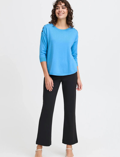 Dieser Strickpullover ist ein vielseitiges Kleidungsstück, das sich perfekt für den Lagenlook eignet. Er hat lange Ärmel und einen Rundhalsausschnitt. Das Design umfasst einen abgerundeten Saum und eine normale Passform, wobei einige Varianten mit Knöpfen an den Ärmeln versehen sind. Dieses hüftlange Kleidungsstück ist ein Basic für jede Garderobe.