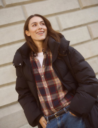 Dieser Ledergürtel ist eine elegante Ergänzung für jedes Outfit und verfügt über eine quadratische Schnalle und goldfarbene Beschläge. Die Schlaufe ist mit einem dezenten Logo versehen.