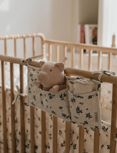 Mit diesem gesteppten Betttäschchen haben Sie wichtige Babyartikel immer griffbereit. Es ist aus weichem Baumwollsatin gefertigt und lässt sich einfach an der Seite eines Kinderbetts befestigen, sodass Schnuller, Rasseln und Spucktücher immer in Reichweite sind. Das charmante Design verleiht dem Kinderzimmer einen Hauch von Eleganz.