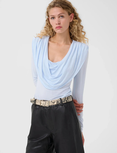 Elegante Drapierungen definieren dieses langärmlige Oberteil und schaffen eine raffinierte Silhouette. Der weiche Stoff und die entspannte Passform machen es zu einer bequemen und dennoch stilvollen Wahl für jeden Anlass.