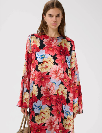 Dieses Kleid ist aus einem leichten Material gefertigt und hat eine entspannte Silhouette. Die fliessenden Ärmel und das lebendige Blumenmuster machen es zu einem herausragenden Stück.