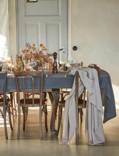 Lovely rustic tablecloth in washed linen/cotton mix that gives the fabric a slightly unironed and nice texture that is very soft and supple. We finish the tablecloth with a decorative double stitch along the edges.