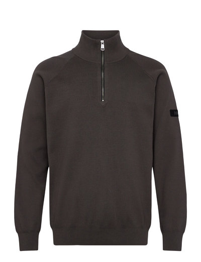 Ein halber Reissverschluss und ein Stehkragen definieren diesen bequemen Strickpullover. Raglanärmel ermöglichen eine grössere Bewegungsfreiheit, während die Rippdetails an Bündchen und Saum für einen sicheren Sitz sorgen.