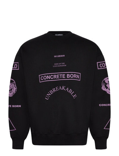 Dieser Crewneck-Pullover mit Grafikdruck auf Vorderseite und Ärmeln bietet einen unverwechselbaren Look. Das Design beinhaltet auffällige Texte und Bilder, was ihn zu einem herausragenden Kleidungsstück für den Alltag macht.