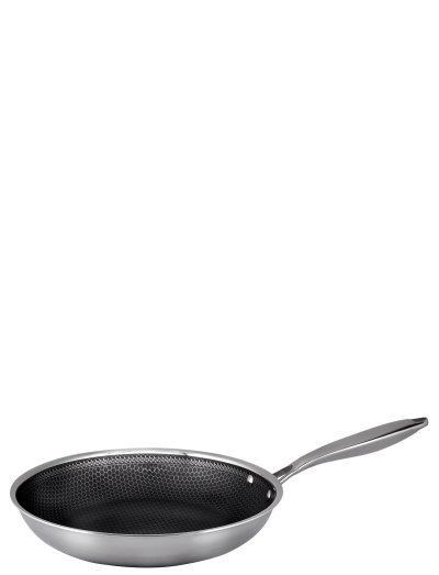 The Hâws Santo series 30 cm frying pan offers practical features and materials that elevate your cooking experience. The pan is designed with care and precision to ensure that even the most demanding kitchen tasks are completed with ease and style ADVANCED MULTI-PLY TECHNOLOGY which is a 3-layer design of stainless steel, aluminum and stainless steel with a strong Hybrid Coating, the pan ensures optimal heat distribution. This technology makes it possible to achieve perfect cooking results every time, as the heat is distributed evenly and efficiently throughout the pan. The product is oven safe up to 260°C, and can withstand up to 400°C on the stove. COLD HANDLE on the pan provides safe handling even when the pan is hot. This ergonomically designed handle stays cool, so you can work in the kitchen without worrying about burns or discomfort. STRONG HYBRID COATING a special feature of this pan that covers the inner surface of the pan. This coating makes it possible to use metal utensils without worrying about damage to the coating or the utensils themselves, while also being PFAS-free, giving you peace of mind regarding health and environmental impact. Whatever your level, this 30 cm frying pan from the Hâws Santo range will be your reliable companion in the kitchen, delivering excellent results every time. There are more products in the series.