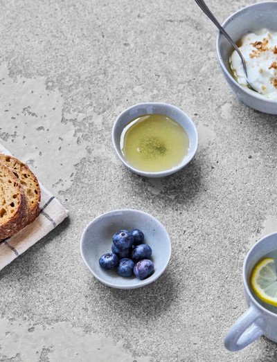 Brighten your table with this set of four handmade stoneware bowls. The light blue reactive glaze and visible raw clay base give each bowl its own personality, perfect for serving dips, snacks, or treats. Mix and match with other ceramic pieces for endless styling options.