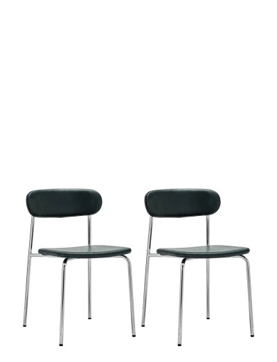 This dining chair brings an instant touch of modern style to your kitchen or dining room. The dark green leather-look seat and back are beautifully highlighted by a sleek chrome frame and elegant piping along the edges. Thoughtful design makes it comfortable for long dinners and easy to stack when you need extra space. Create a welcoming setting for both daily meals and special gatherings, letting colour and comfort uplift your home décor.