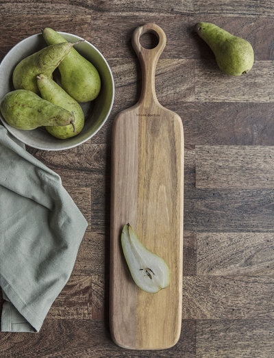 An every essential for your food preparation. this cutting board from house doctor is made of acacia wood to give your kitchen décor a warm and inviting touch. its length and handle also makes it ideal as a serving platter when you are having guests over. or you could simply use it to cut your bread. when you are not using the cutting board, let it lean against the wall as part of the kitchen décor.