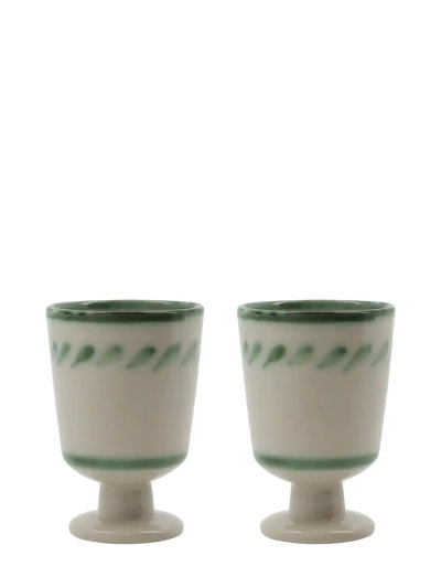 Enjoy your favourite hot drink in a set of handcrafted stoneware mugs, each one uniquely finished with a nostalgic green handpainted pattern on off-white glaze for a cosy and rustic touch at any table.