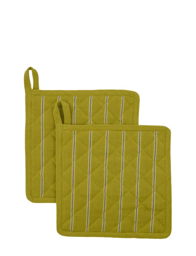 Infuse your kitchen with timeless style through this set of two mustard pot holders. the striking mustard base colour is beautifully complemented by narrow stripes in offwhite and black, offering a classic and versatile design. made from 100% cotton, these pot holders provide a thick, quilted texture for superior heat protection. perfect for everyday use, they combine practical function with an elegant appearance that enhances your kitchen's aesthetic. set of 2 pieces made from 100% cotton thick quilt for protection timeless stripe designadd a stylish touch to your kitchen essentials.