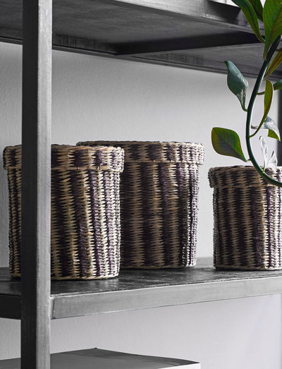 Stay organised with this set of 3 storage boxes from house doctor. the seagrass adds a natural and casual touch to your home decor, not least because of the stripes. not only do you get a practical storage solution. the baskets is a welcome contrast to other materials like concrete and ceramics, creating balance in your decor. place the baskets together on a shelf, on your dresser or scattered throughout your home wherever you need that extra bit of storage space.