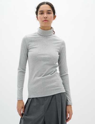 Dieses langärmlige Oberteil mit bequemem Rollkragen ist eine elegante und vielseitige Ergänzung für Ihre Garderobe. Der Melange-Strick sorgt für eine dezente Textur und macht es ideal zum Layern oder zum Solotragen.
