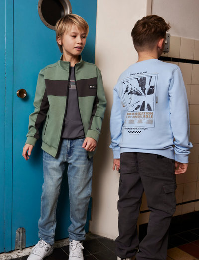 Cool sweatshirt from Indian Blue Jeans. The sweatshirt comes in a clear, solid color that adds a stylish touch to an outfit. It features a simple text design on the chest and a graphic design on the back, creating a trendy look. The sweatshirt has a neat and relaxed fit that ensures a comfortable wear. It is made from an organic cotton blend that feels soft against the skin.