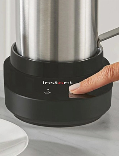Enhance your barista skills at home with the touch of a button! Whip up hot and cold café drinks and creamy specialty beverages with the Instant™ Frother Station. Easy to use and clean, our largest-capacity multi-frother features simple touch controls and adjustable settings—with 3 temperature levels and 3 froth levels—for up to 9 custom combinations and endless possibilities. Make rich hot chocolate or chocolate milk using chocolate chips or powder. Transform powdered drinks into silky textures for perfect matcha and chocolate beverages, whether using water, dairy milk, or plant-based alternatives. The compact, low-profile, and lightweight design looks beautiful on your countertop. The handle stays cool during use, while the dishwasher-safe stainless steel jug, removable clear lid, and whisk make cleanup a breeze.