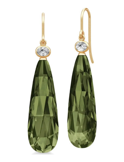 Rosengeschliffene Birnen-Briolettes definieren diese eleganten Ohrhänger. Die schlanke Silhouette ist aus 22 Karat vergoldetem 925er Sterlingsilber gefertigt und besteht aus recycelten Metallen. Ein oval geschliffener, weisser Zirkonia, ethisch einwandfrei beschafft und sorgfältig von Hand gesetzt, krönt jedes Schmuckstück. Abgerundet werden sie durch einen satiniert polierten, französischen Haken für Komfort.