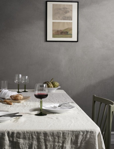 You immediately sense Kähler's heritage of proud, traditional craftsmanship when you hold the stem and drink from the new wine glasses in Kähler's Hammershøi series. The proportions are balanced and classic, and the design language of the wine glasses in interaction with the iconic grooves highlights the classic, yet contemporary expression of the series, which is eternally current on the table. The grooves almost rise up and carry the round bowl at the top. Notice also the details, where the stem tapers both at the top and bottom – a clear reference to the design tradition that is the hallmark of a Hammershøi vase. The glasses come in a package of two red wine and white wine glasses, in either a clear version or a version with a green stem and base, which adds yet another new dimension to both the iconic grooves and the table setting.