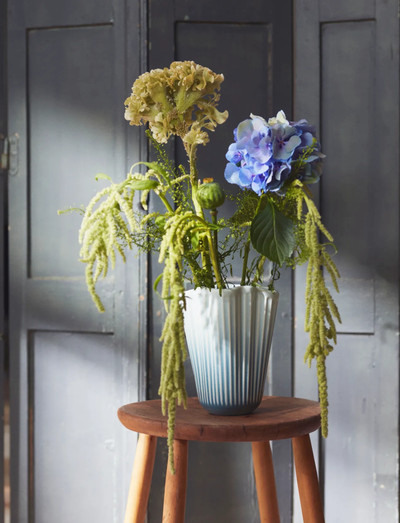 Good craftsmanship and original Danish design unfolded in a new and modern expression shaped by tradition. With the Hammershøi Unfold vase series, you once again get up close to Kähler’s simultaneously authentic and modern expression. What is particularly special about the Hammershøi Unfold vases is their folded form in a soft and inviting design that encourages flowers to fall in a uniquely beautiful way, leaning more towards the sides of the vase. This visually extends the flowers upwards with the help of the vase’s form, while also supporting the flowers to stand naturally. The Hammershøi Unfold vases are made of ceramic, and in this exclusive 16.5 cm version, you can fully enjoy not only the incredibly beautiful folded design but also how the glaze graduates from a fresh light blue at the top of the vase to a deep dark blue at the base. Enjoy it on its own, together with the rest of the Unfold series, with or without flowers, and let yourself be captivated by the calm and the special sense of authentic Danish quality design – where the exceptional glaze work can easily give you the feeling of gazing out over the infinite majesty of the sea. All vases in the Unfold series have the same unique folded form, giving the series its unmistakable both modern and nostalgic touch, which, along with the iconic grooves, draws threads back to Kähler’s proud craftsmanship traditions – while confidently pointing forward with depth and life. Hammershøi Unfold, like the rest of the Hammershøi series, is created by designer Hans-Christian Bauer, inspired by one of Svend Hammershøi’s classic vases from the 1930s. With its characteristic organic and playful design, it allows you to experiment and style your flowers or cut branches easily and naturally. The soft expression in Hammershøi Unfold stands in stark contrast to the classic Hammershøi vase, but the trained design eye will immediately notice the enormous similarity and very familiar feeling in the form of the vase’s grooves, material, and strong presence. With Hammershøi Unfold, you get both a contemporary and nostalgic interpretation of Kähler’s authentic design shaped by tradition in a modern, forward-looking perspective – a unique work of art in a very special expression of depth and life that has always been the design thread in Kähler’s proud craftsmanship traditions.