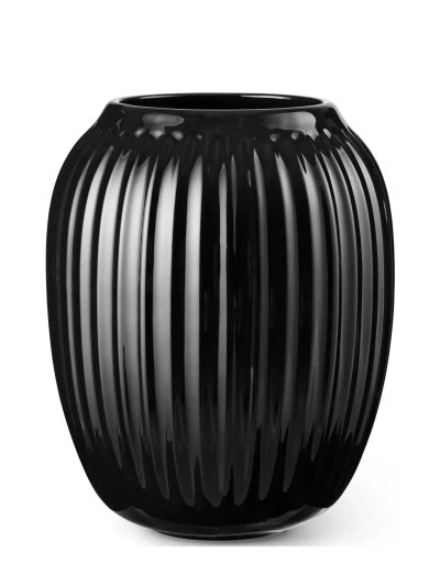 The elegant black glazed vase from the Hammershøi series is inspired by the works of Svend Hammershøi and has a timeless, modern expression. The vase has a beautiful little collar around the neck, which together with the grooves and the harmonious shape of the vase naturally lengthens the fresh flowers so that they elegantly blend in with the ceramics. Leave the vase alone as a strong design statement, or mix it with others of Hammershøi beautiful designs.