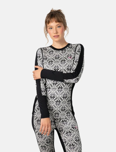Dieses langärmlige Baselayer aus 100 % Merinowolle besticht durch einen auffälligen nordischen Print, der Ihre Wintergarderobe aufpeppt. Es wurde sowohl für die Piste als auch für die Strasse entworfen und bietet eine schlanke, schmeichelhafte Passform mit Body Mapping für mühelose Bewegungsfreiheit und Unterarmpanels für zusätzliche Belüftung, wenn Sie ins Schwitzen geraten.