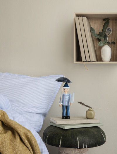 The Nightingale, the Shepherdess and the Chimney Sweeper are already on the shelves of the museum shop in Odense and at rosendahl.com. They are now joined by Sandman, whom you will also find in your local design shop. Wearing a light blue nightshirt, dark blue pyjama trousers, slippers and a little hat, the Sandman stands happy and smiling with his two umbrellas. The colours are tranquil and limited to cool shades of blue. Sandman has been turned in FSC® certified beech. He has been made by hand with the great precision and care that are the hallmarks of Kay Bojesen's wooden figurines. The shape is based on the original Ole figurines from Kay Bojesen's archive – simple and minimalist, but full of life and soul – so that Ole is given a feeling of magic and adventure that reflects the spirit of Kay Bojesen and the storytelling he succeeded in creating in his imaginative figurines.