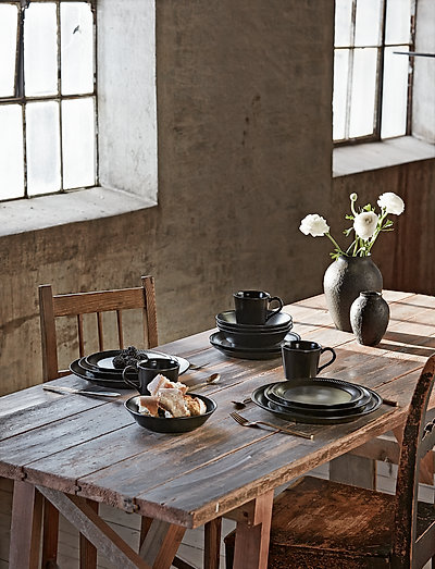 The Knabstrup dinnerware was the first stoneware table service that was produced at Knabstrup, in production from 1966-1972. The service is minimalistic with an elegant corrugated edge, and the original olive green reactive glaze lends a special and unique expression to every single product. Since then, three new colours have been added - blue, black and white - in exclusive matte silk glazes.