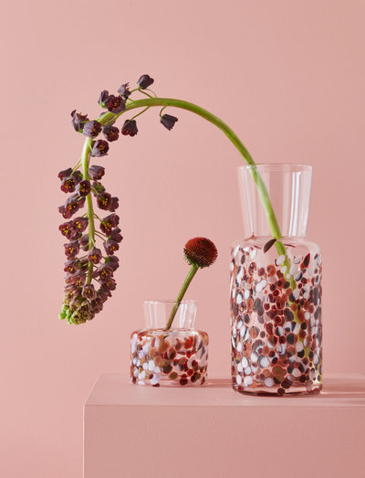 Meadow has, as the name suggests, a flowering field as both inspiration and expression. It's a series of vases that look just as good with or without flowers. Thanks to the glass crushing technology used in the production, each vase is unique. The small Fall vase is great for embracing a small bouquet, or shine bright like the vibrant colors of autumn leaves. Design by Sara Persson.