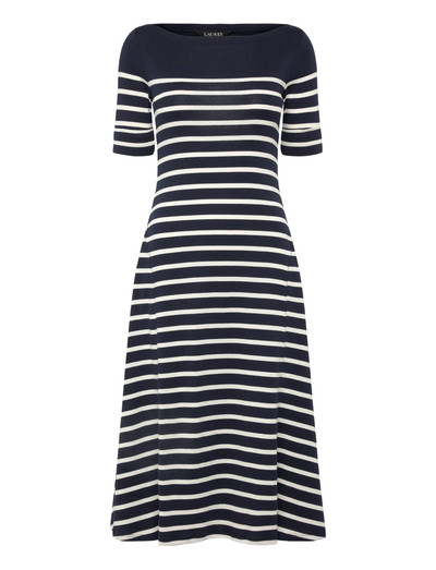 Dieses Midikleid aus bequemem Baumwoll-Rippstrick verfügt über ein durchgehendes Streifenmuster. Das Design bietet eine schmeichelhafte Silhouette und einen Hauch von zeitlosem Stil. Perfekt für den Alltag oder für zwanglose Ausflüge.