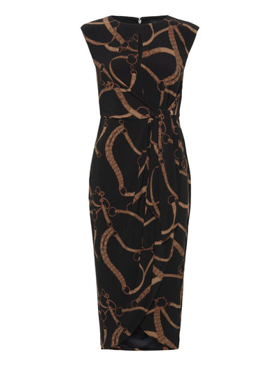 Ein vom Reitsport inspiriertes Gürtelmuster wertet dieses Kleid mit kurzen Ärmeln auf, während der Wickelrock-Look und der Schlüssellochausschnitt seinen Charme unterstreichen. Weicher Stretch-Jersey sorgt für einen angenehmen Tragekomfort. Die Etui-Silhouette ist so konzipiert, dass sie bis zur Mitte der Wade reicht, was sie zu einer vielseitigen Wahl für verschiedene Anlässe macht. Ein verdeckter Reissverschluss hinten rundet das Design ab.