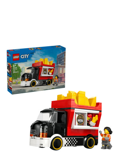 60488Serving fast food is child’s play with this LEGO® City Fries Food Truck (60488) toy building set for ages 5 and over. The colourful food truck features a detachable kiosk shaped like a giant carton of fries. Kids can remove the roof to access a detailed food prep area complete with a fryer, condiments and a sliding service window. This model fast food truck also features an opening bonnet with a toy engine and comes with vendor and customer minifigures.