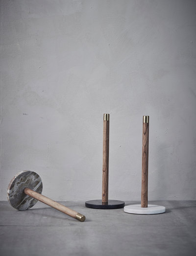 Our beautiful elisse is made from acacia wood and marble. our elisse kitchen roll exudes elegance and class and is a perfect accessory to compliment traditional kitchen decor. the exclusive marble base on the kitchen roll, fits beautifully among any table setting or kitchen. the wood is sawn out of a large block of wood and then cut into the requested shape and then polished on all surfaces. the acacia wood is lime washed in order to get this specific color. the base of elisse is made of marble. also sawn out of a large block of marble and then cut into the requested shape and then polished on all surfaces. lene bjerre logo is etched into the marble with laser radiation. the entire production process is done by hand and it all requires both experience and concentration. because it is a handmade product, and marble and wood are a natural material, variation in color may occur.
