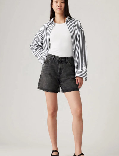Diese Denimshorts bieten eine entspannte Silhouette mit hoher Taille und einer längeren Länge, die knapp oberhalb des Knies endet. Die lockere Passform sorgt für ganztägigen Komfort und einen Vintage-inspirierten Look.
