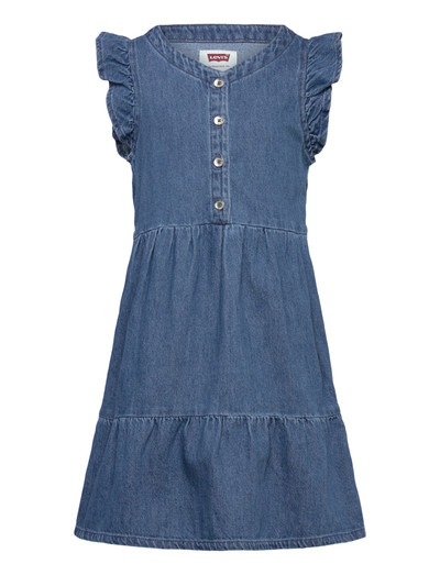 Volantärmel und eine Knopfleiste vorne verleihen diesem lässigen Kleid einen Hauch von Charme. Abgestufte Details am Saum sorgen für eine verspielte Silhouette.
