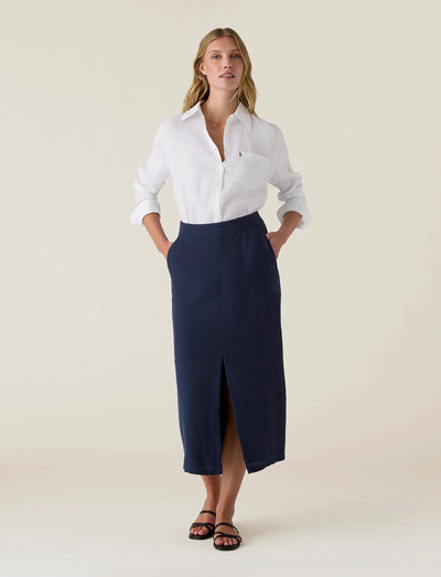 Dieses langärmlige Hemd aus leichtem Leinen bietet eine entspannte Passform und atmungsaktiven Komfort. Es verfügt über ein klassisches Button-Down-Design, eine Brusttasche und einen leicht abgerundeten Saum, was es zu einer vielseitigen Ergänzung für jede Garderobe macht.