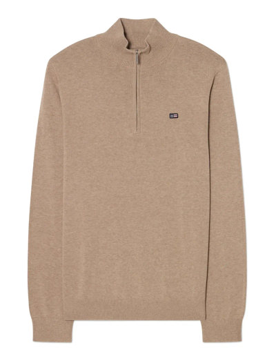 Ein Half-Zip-Verschluss mit einem charakteristischen Logo-Metallanhänger wertet diesen Strickpullover auf. Das klassisch geschnittene Design zeichnet sich durch ein dezentes Marken-Flaggen-Badge auf der Brust, eingesetzte Ärmel und einen 1x1-Doppelrippkragen sowie einen einfachen Rippsaum und -bündchen für ein bequemes und elegantes Finish aus.
