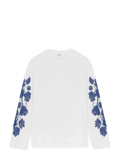 Dieses langärmlige Oberteil bietet zusätzliche Bedeckung und verfügt über ein einzigartiges Weinrankenmuster entlang der Ärmel. Der klassische Rundhalsausschnitt macht es zu einer vielseitigen Ergänzung für jede Garderobe.