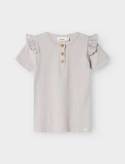 Dieses Lil'Atelier Oberteil ist eine stilvolle und bequeme Wahl für Kinder. Es hat einen gerippten Stoff, kurze Ärmel und eine Knopfleiste. Das Oberteil hat auch ein süßes Rüschendetail an den Schultern.