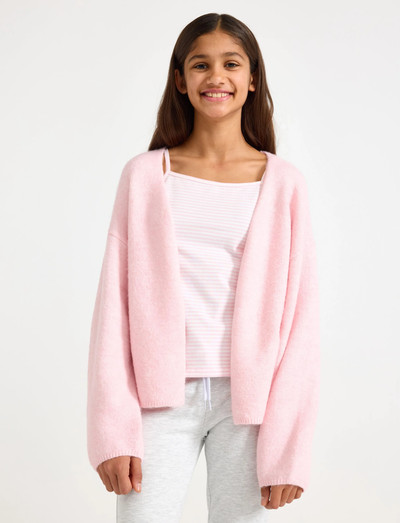 Diese Strickjacke bietet eine entspannte Passform und eine offene Vorderseite, wodurch sie sich vielseitig kombinieren lässt.