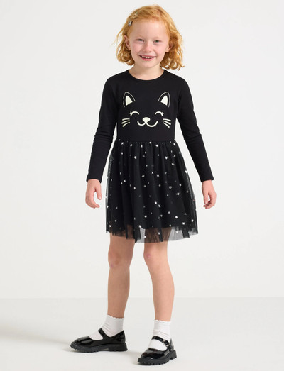 Dieses langärmlige Kleid mit einem bezaubernden Katzengesicht-Design ist perfekt für jeden Anlass. Das weiche Jersey-Oberteil ergänzt den verspielten Tüllrock und sorgt für einen bequemen und stilvollen Look.