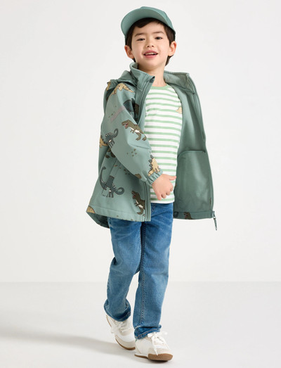 Diese Softshelljacke ist perfekt, um Kinder warm und trocken zu halten. Sie hat einen lustigen Dinosaurier-Druck und eine Kapuze für zusätzlichen Schutz. Die Jacke ist auch winddicht und wasserabweisend, was sie ideal für Outdoor-Spiel macht.