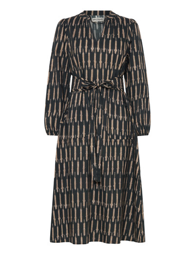 Dieses Midikleid besticht durch eine schmeichelhafte, feminine Silhouette, die die Taille wunderbar betont. Der einzigartige Print sorgt für einen Hauch von Charakter, während grosse Vordertaschen für Funktionalität sorgen. Tragen Sie es mit dem mitgelieferten gesteppten Gürtel, um Ihre Figur zu definieren, oder ohne für einen entspannteren Look. Hergestellt aus bequemer und atmungsaktiver Baumwolle.