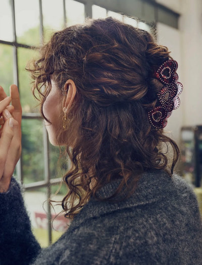 Diese Haarspange mit einem Trio von Herzformen verleiht jeder Frisur einen Hauch von Romantik. Jedes Herz ist mit funkelnden Strasssteinen verziert, was einen ausgewogenen und eleganten Look erzeugt.