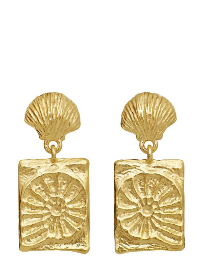 Diese Ohrringe bestechen durch einen rechteckigen Anhänger mit Struktur und einem muschelförmigen Stecker, was für einen einzigartigen Look sorgt. Das detaillierte Blumenmuster auf dem Anhänger verleiht einen eleganten Touch.