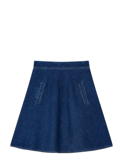 Dieser Rock aus Denim hat eine klassische A-Linien-Silhouette. Das Design mit Einsätzen sorgt für dezente Details, während der knielange Schnitt ihn vielseitig für verschiedene Anlässe macht.