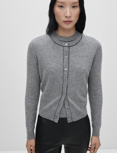Long sleeve, Straight Design, Fine-knit fabric, Round neck, Decorative seams, Selection Collection, The model is 1.75 tall and is wearing a size 36, 100% wool fabric, Front closure with buttons