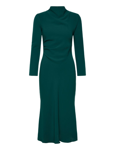 Elegante Drapierungen definieren dieses Midikleid und schaffen eine raffinierte Silhouette. Das A-Linien-Design wird durch lange Ärmel und Seitenrüschen ergänzt, während das Innenfutter für eine glatte Passform sorgt. Es wird mit einem verdeckten Reissverschluss auf der Rückseite geschlossen.