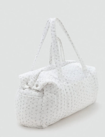 Diese gesteppte Tasche aus reiner Baumwolle besticht durch einen zarten Blumendruck. Sie verfügt über kurze und lange Tragegriffe für vielseitige Tragemöglichkeiten, bietet viel Platz und lässt sich sicher mit Knopf und Reissverschluss schliessen. Sie ist Teil der Welcome- und Maternity-Kollektionen und passt perfekt zur Kulturtasche aus der Kollektion.