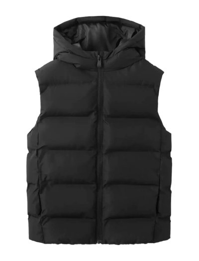 Eine Steppung macht diese ärmellose Weste zu einer kuscheligen zusätzlichen Schicht. Sie verfügt über einen Rundhalsausschnitt, eine Kapuze und einen Reissverschluss. Das gerade Design wird durch zwei Seitentaschen ergänzt.